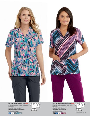 3-pocket, shaped V-neck, fitted back Modern Fit Size: XS - 5XL, CB: 25.5" 2218 Olivia Pant - 142 Graphite 08