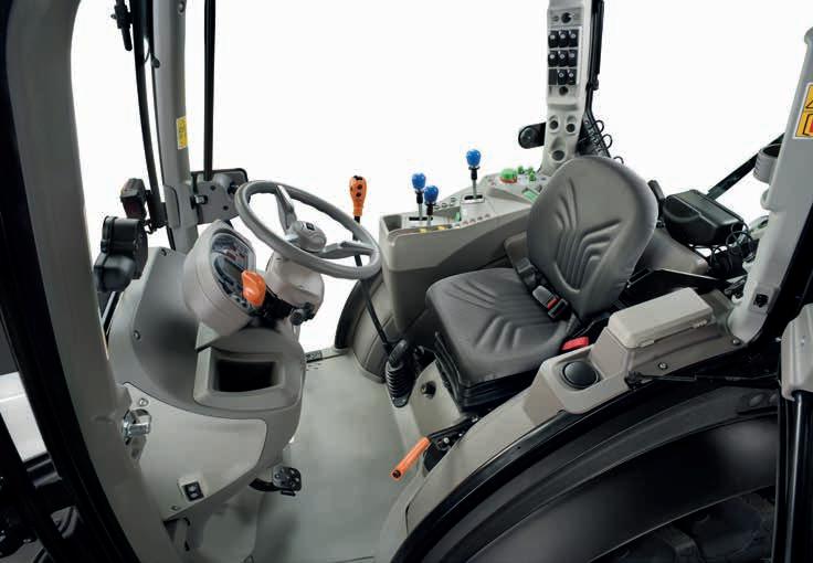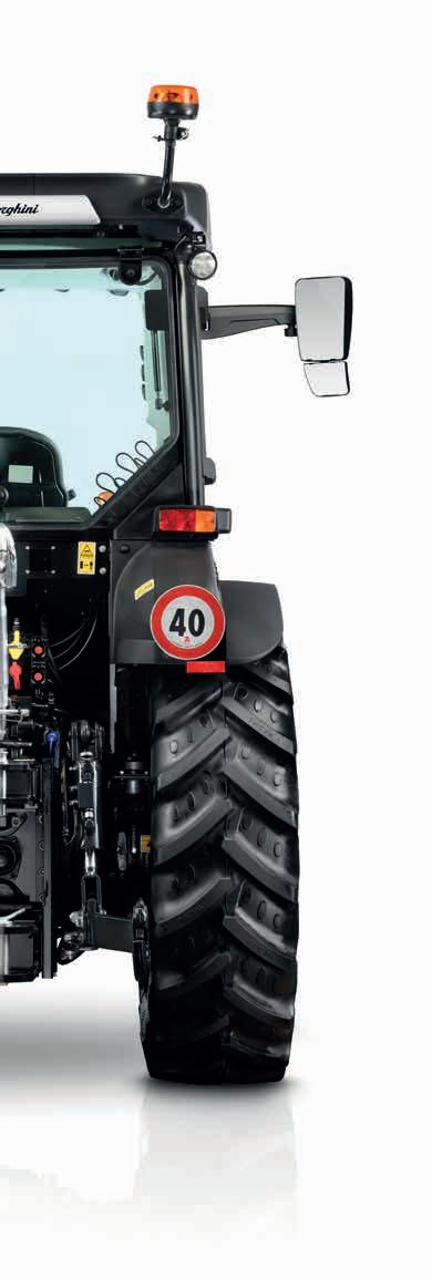 espacio para las piernas del conductor, incluso en la versión más estrecha (Spire V). Además, como no hay escalones en el interior de la cabina, se accede muy fácilmente al asiento del conductor. El diseño de la cabina de los nuevos Lamborghini Spire F/S/V no solo responde a criterios de comodidad de uso, también garantiza una excelente seguridad a bordo. El sistema de filtración Cat.4 opcional actúa tanto en la filtración del aire como en la presurización de la cabina, garantizando la protección del conductor durante la aplicación de los tratamientos fitosanitarios.