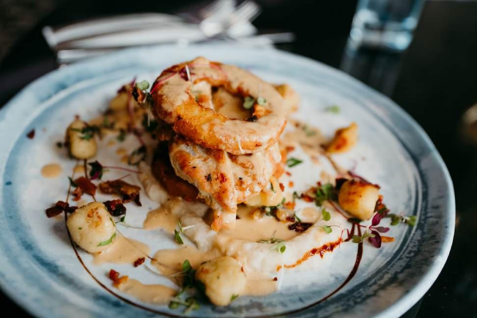 And the Homemade Chorizo Hash Browns with poached eggs and grated parmesan, was drizzled with bravas sauce and garlic aioli, and finished with fresh chives and crispy onions.
