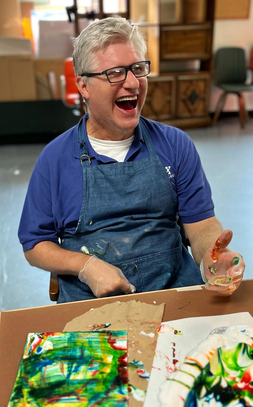 Dean, a Lambs Farm participant, was highlighted on WGN’s Spotlight Chicago for his love for the program. Although his physical disabilities have posed challenges in activities like drawing and painting, the introduction of adaptive tools and techniques has given him an inspiring sense of creative freedom.