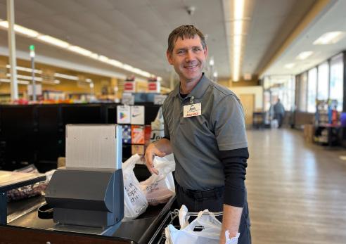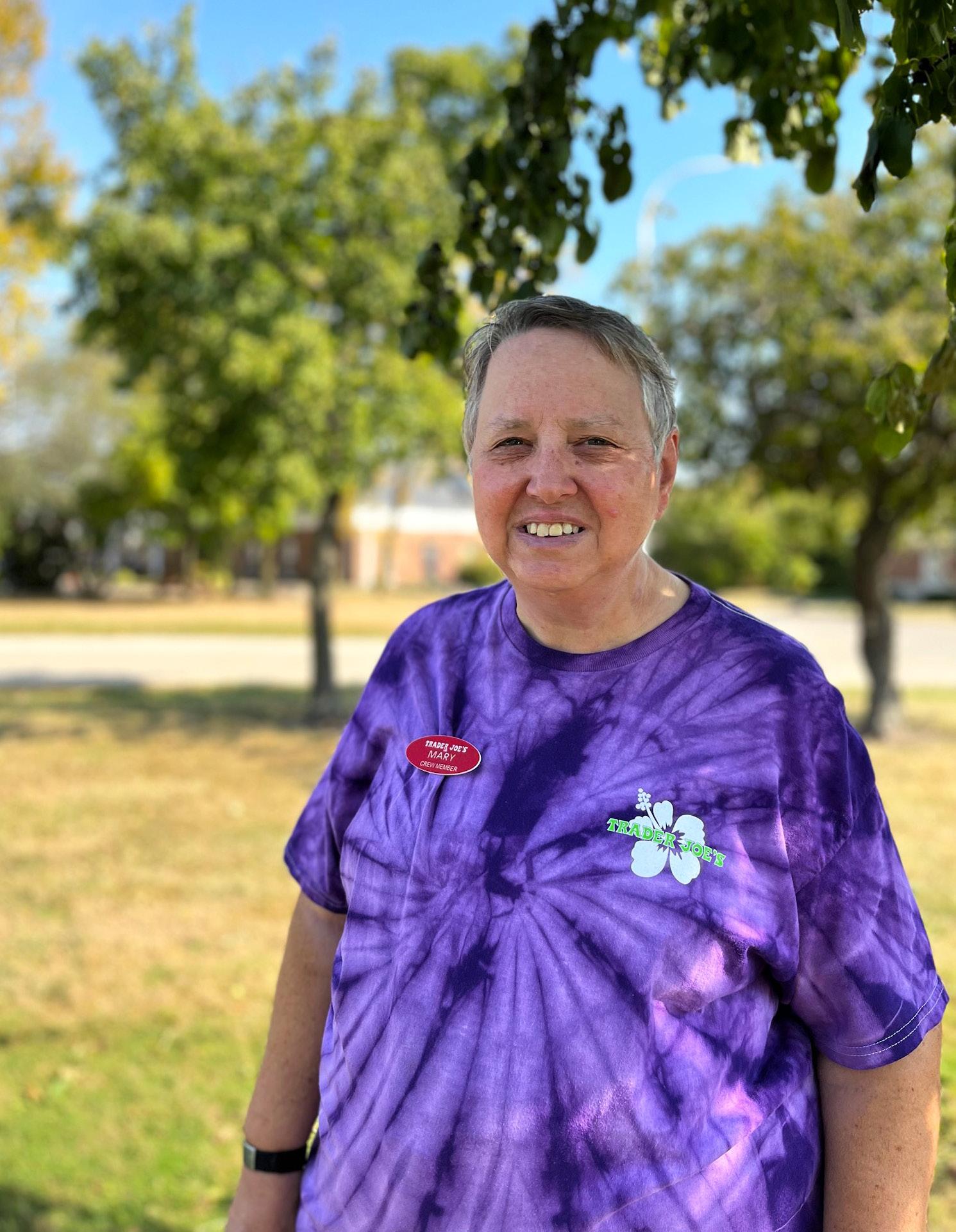 Mary brings her cheerful spirit to every shift at Trader Joe’s, engaging with customers and coworkers while embracing the independence her job provides.