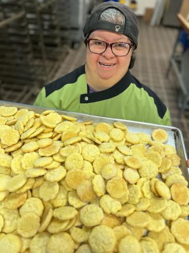 Jessica, a talented baker at Sugar Maple Country Store & Bakery, has progressed from sprinkling cookies to preparing dough independently, gaining confidence with each new task.