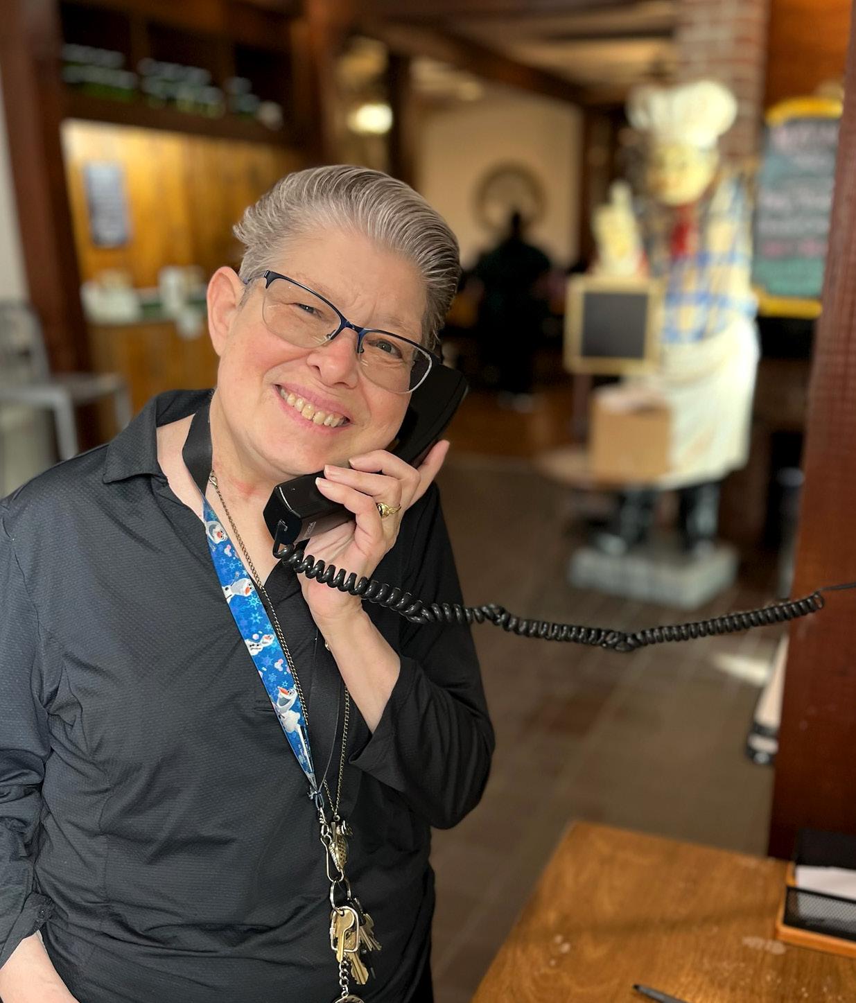 Michele, a warm and welcoming hostess at Magnolia Cafe & Bakery, is mastering phone orders and the point-of-sale system, enhancing her customer service skills.