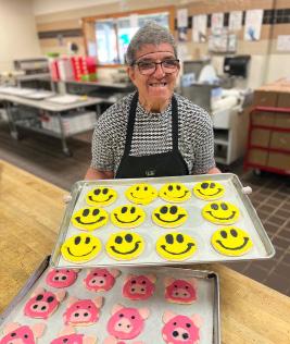Participant bakers are busy decorating cookies to stock the bakery cases