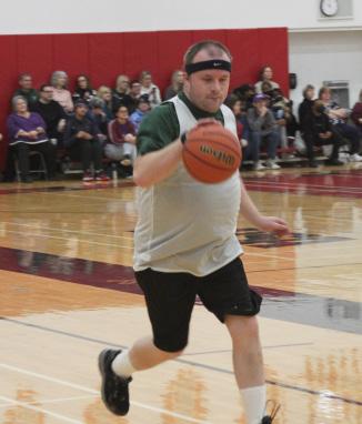 Josh earned the gold at snowshoeing Patrick moves the ball down the court