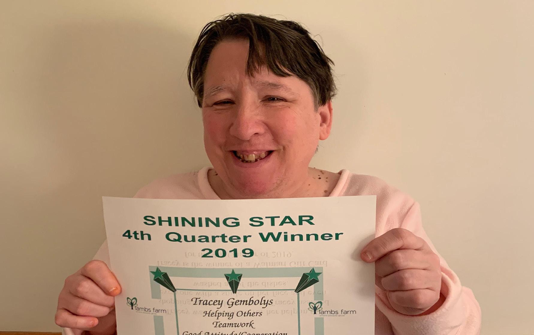 Tracey Gembolys with her Shining Star award