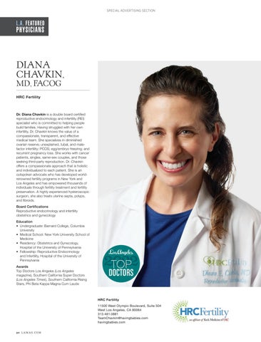 HRC Fertility 11500 West Olympic Boulevard, Suite 504 West Los Angeles, CA 90064 313.481.0881 TeamChavkin@havingbabies.com havingbabies.com 9 0 L A M AG . C O M