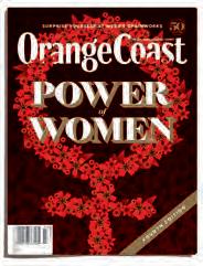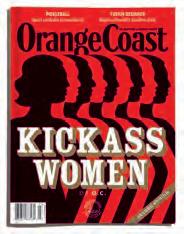 VOLUME 50, NUMBER 3. ORANGE COAST (ISSN 02790483) is published monthly by Engine Vision Media. Principal office: 644 S. Figueroa St., 3rd Floor, Los Angeles, CA 90017. Periodicals postage paid at Los Angeles, CA, and additional mailing offices. The one-year domestic subscription price is $19.95. POSTMASTER: Send address changes to ORANGE COAST, PO Box 5037, Boone, IA 50950. Not responsible for unsolicited manuscripts or other materials, which must be accompanied by return postage. SUBSCRIBERS: If the Postal Service alerts us that your magazine is undeliverable, we have no further obligation unless we receive a corrected address within one year. Copyright © 2024 Engine Vision Media. All rights reserved. Reproduction in whole or part of any text, photograph, or illustration without written permission from the publisher is strictly prohibited. SUBSCRIBER SERVICE: 626-659-8004. GST #R133004424. Printed in the USA.