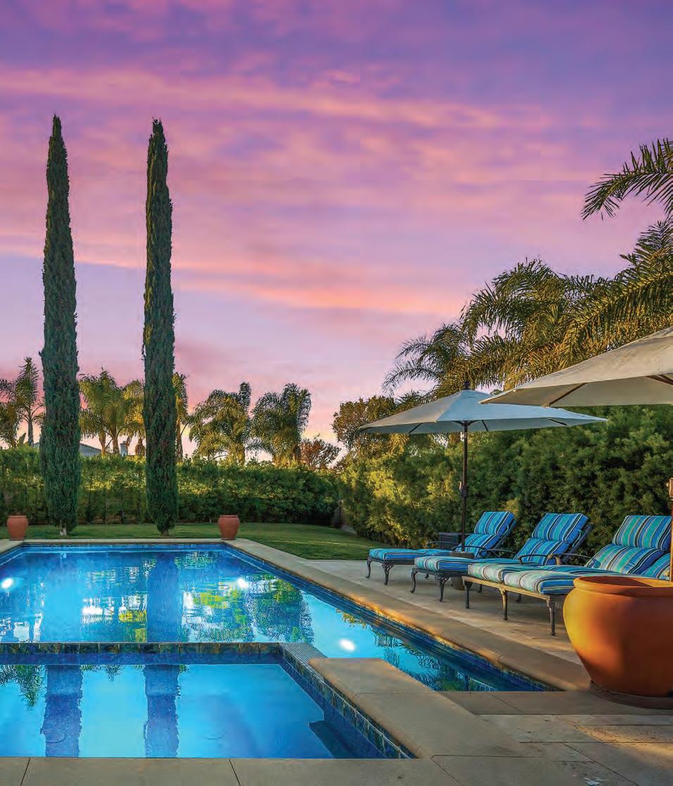 Nestled in The Groves’ intimate 10-estate community, this dream home spans nearly 4,500 square feet of meticulously designed living space on a generous 33,541-square-foot lot. The private, gated estate embodies Mission Revival style, boasting a three-bedroom main house, a separate one-bedroom casita, resort-inspired amenities, and sprawling grounds with olive trees, courtyards, and fountains.