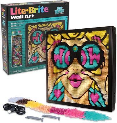 New Pop Art designs for LiteBrite feature Lichtenstein-esque scenes in bright colors. $100, basicfun.com