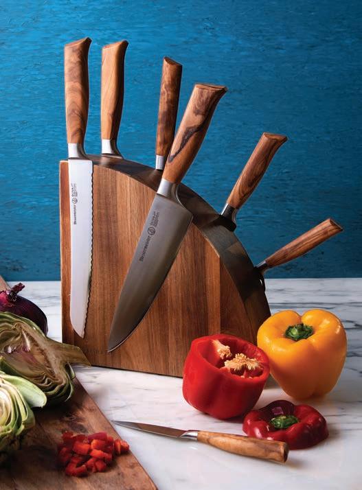 German-made, women-owned “knife for life” brand Messermeister o ers an eight-piece block set or five-inch tomato and cheese knife with personalized engraving on the blade—and gives back to charities such as World Central Kitchen by José Andrés. From $60, messermeister.com