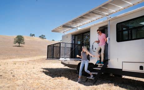 Vacation home out of reach? Think of Living Vehicle’s 2023 travel trailer as your luxury mobile apartment. Each can be configured to house a home theater, chef’s kitchen, and even a mobile o ce. From $339,995, livingvehicle.com
