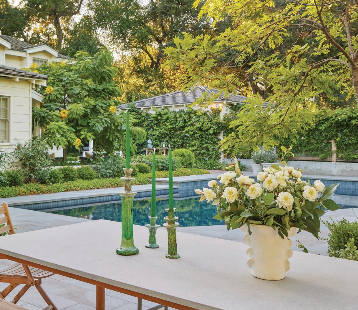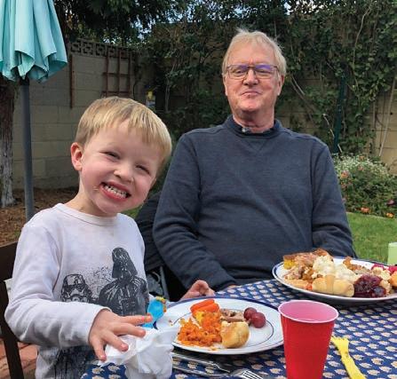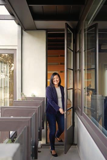 Rafael Park. / Watching the sunrise from my kitchen is the best place to sip my rst cup of coffee and start the day. I prefer grinding and brewing my own pour-over of Don Francisco’s Coffee, usually 100% Colombia Supremo or Kona Blend. / My favorite local restaurant is Stoney Point. It’s classic Italian food where the owners and staff treat you like family. Be sure to order the chocolate souf e. It’s an off-menu dessert and comes with two large servings, perfect for sharing. / We always pick up olive oil and other Italian treats at Roma Market on Lake. / A relaxing spa day at Chuan Spa at The Langham Huntington hotel is a treat, followed by its afternoon tea. / Chignon Salon is my go-to for a fresh cut and color, and Emblush Beaute for a manicure and pedicure. / I love to be in nature and enjoy the many trails in the San Gabriel Mountains. / Acorn in Eagle Rock is a great shop for gifts and the owner is a Pasadena native. / We’ve attended the Teddy Bear Tea at The Langham every December since my son was a baby and it’s become a wonder ful family tradition. / We love the Parkway Grill for dinner as it’s decorated beautifully for the holidays. / Our favorite part of New Year’s Day is watching the B-2 Stealth Bomber y over our home on its way to open the Rose Parade. —SARA