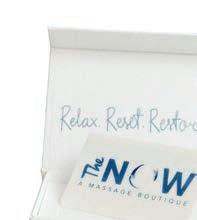 › Enhance your vibration and melt holiday stress away with Burke Williams’ newest o ering: the multi-sensory Tranquility Massage. Designed to bring both body and mind into a state of complete deep relaxation, the treatment integrates massage therapy with the healing e ects of sound to create a calming experience. The Nepalese, handcrafted singing bowls’ vibrations bathe the body as the rhythmic movements of a Swedish massage create a blissed-out state of total tranquility. From $215 for members and $280 for nonmembers; burkewilliams.com —S.S.