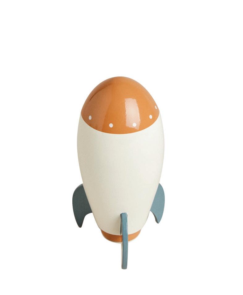 The Zara Home cream-colored Rocket Piggy Bank looks ceramic but is actually metal (so they can’t break it). $30, zara.com