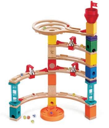 The Hape Quadrilla Stack Track is less frustrating for littles than finicky plastic sets. This version comes with its own storage bucket to use in your track design. $100, hape.com