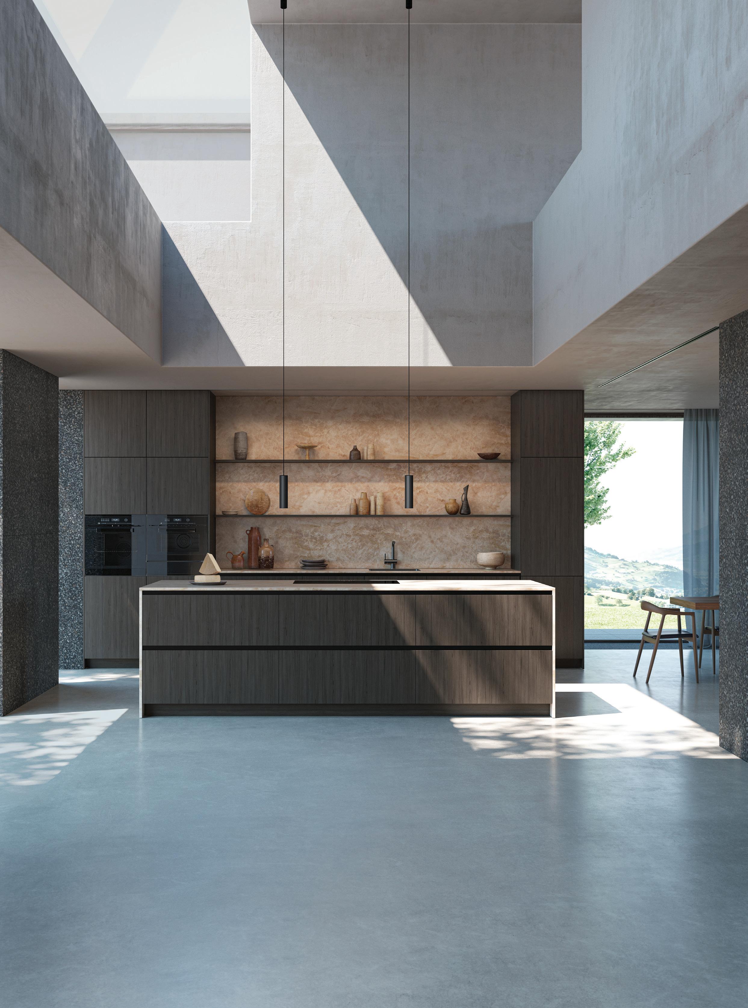 Pieces of furniture and lighting by brands distributed by MASS Beverly adorn the spaces, which blend European sensibility and the American lifestyle, as well as artisanal methods and technology.