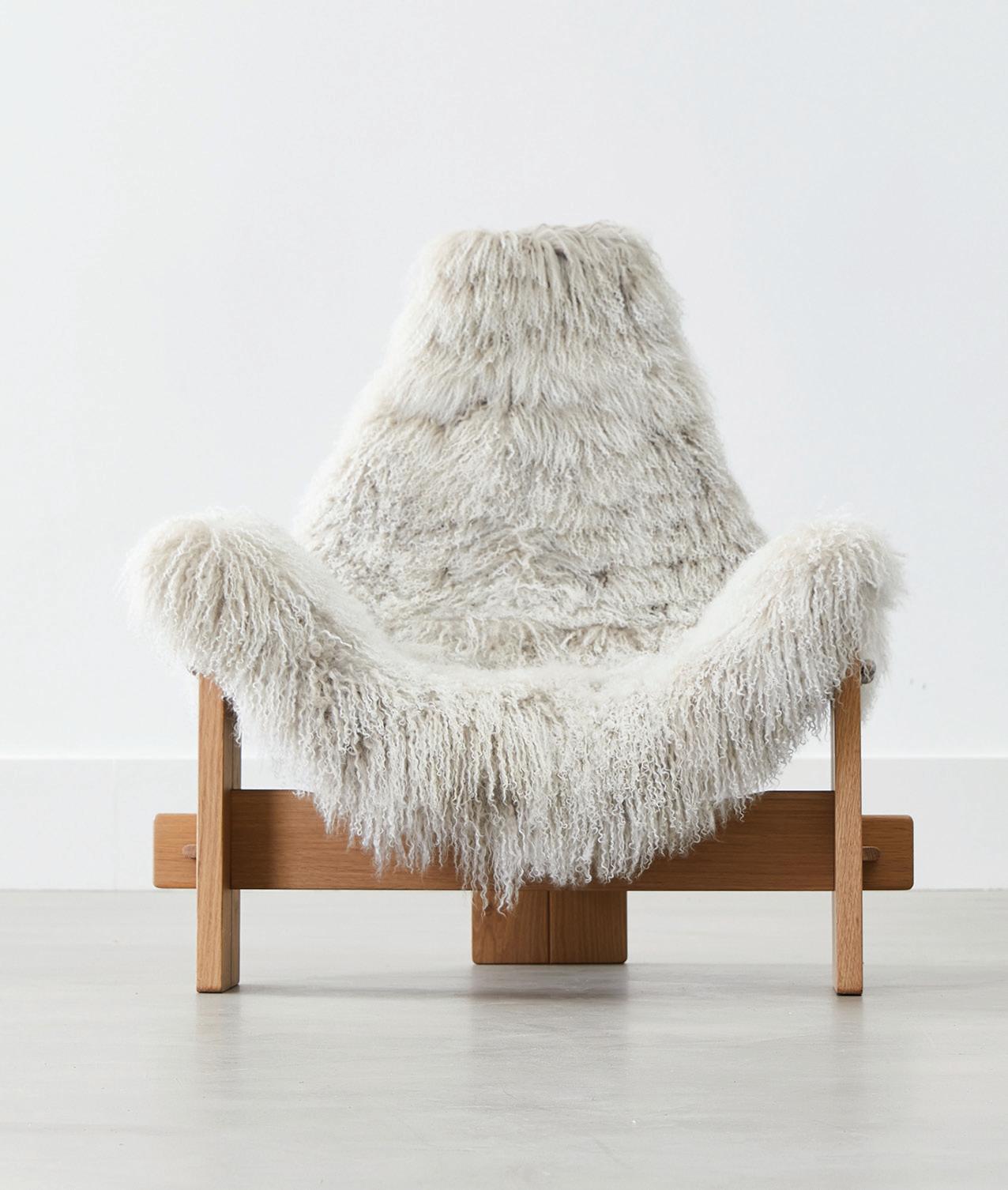 This oak T-frame chair is upholstered in dreamy soft sheepskin coupdetatsf.com