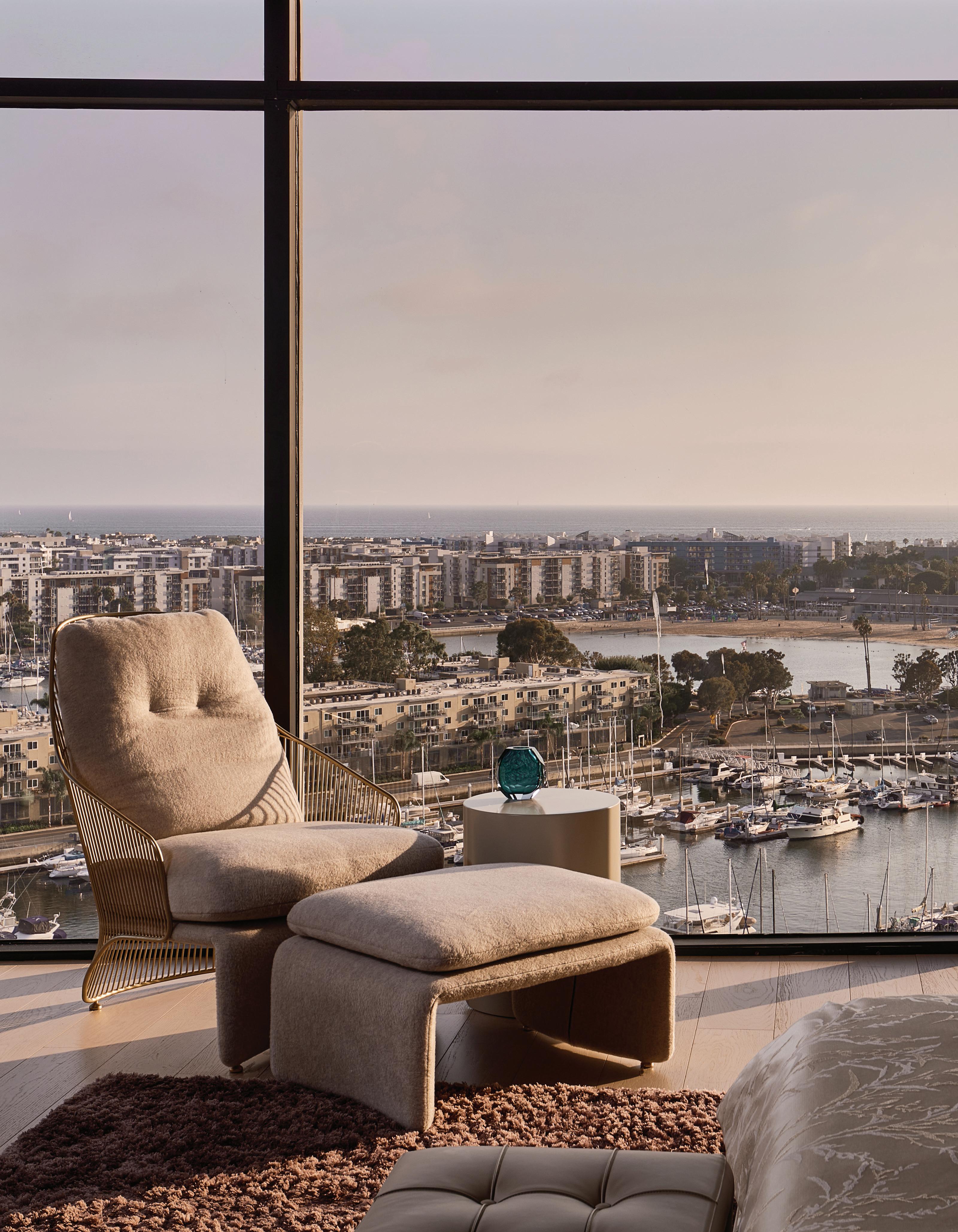 “These towers were here before everything else existed in the marina area,” say Vince Dwyer and Stephanie Jesman. The duo represent MASS Beverly, a firm launched in 2014 by Mary Ta, founder of the Minotti Los Angeles showroom, and Lars Hypko, an expert in the application of highend custom furniture systems. Both Ta and Hypko also contributed to this project.