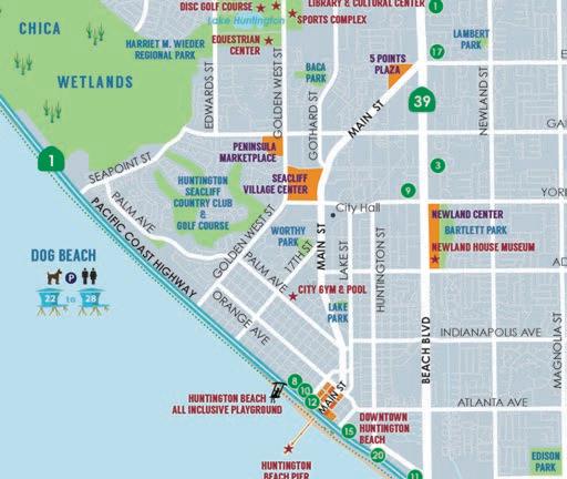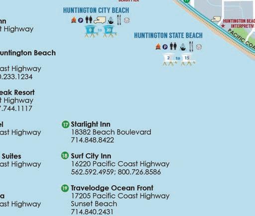Made up of 10 miles/16 km of uninterrupted beaches, Huntington Beach o ers luxurious oceanfront resorts along Pacific Coast Highway with relaxation amenities, outdoor activities, culinary experiences, and almost everything in between.
