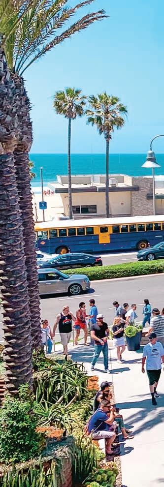 Getting around Huntington Beach is easy and a ordable with Circuit (ridecircuit.com), which o ers eco-friendly electric shuttles. Download the app to view schedules, drop-o points, and payment options.
