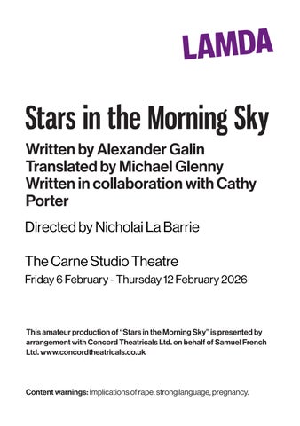 Relaxed Performance – Sensory Guide Saturday 10th February 2024 at 7pm The Carne Studio Theatre, LAMDA