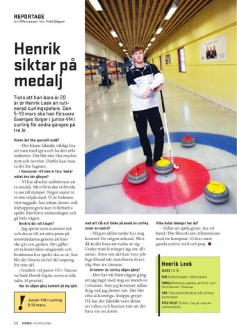 Henrik siktar på medalj Trots att han bara är 20 år är Henrik Leek en rutinerad curlingspelare. Den 5–13 mars ska han försvara Sveriges färger i junior-VM i curling för andra gången på tre år. Känns det lika speciellt ändå?