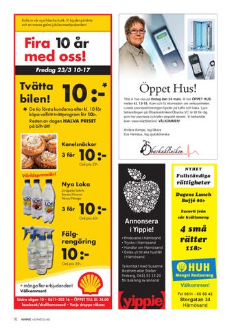 + många fler erbjudanden! Välkommen! Södra vägen 10 • 0611–202 16 • ÖPPET TILL KL 24.00 facebook/shellharnosand • Varje droppe räknas 70