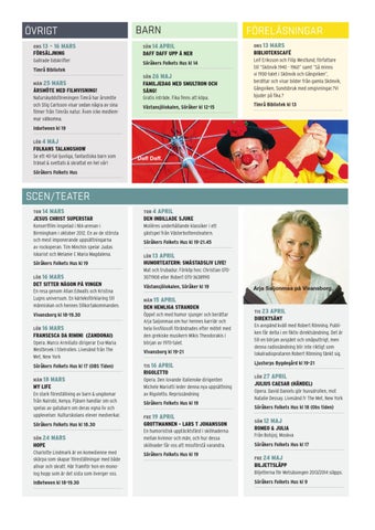 DET SITTER NÅGON PÅ VINGEN En resa genom Allan Edwalls och Kristina Lugns universum. En kärleksförklaring till människan och hennes tillkortakommanden. Vivansborg kl 18-19.30 Lör 16