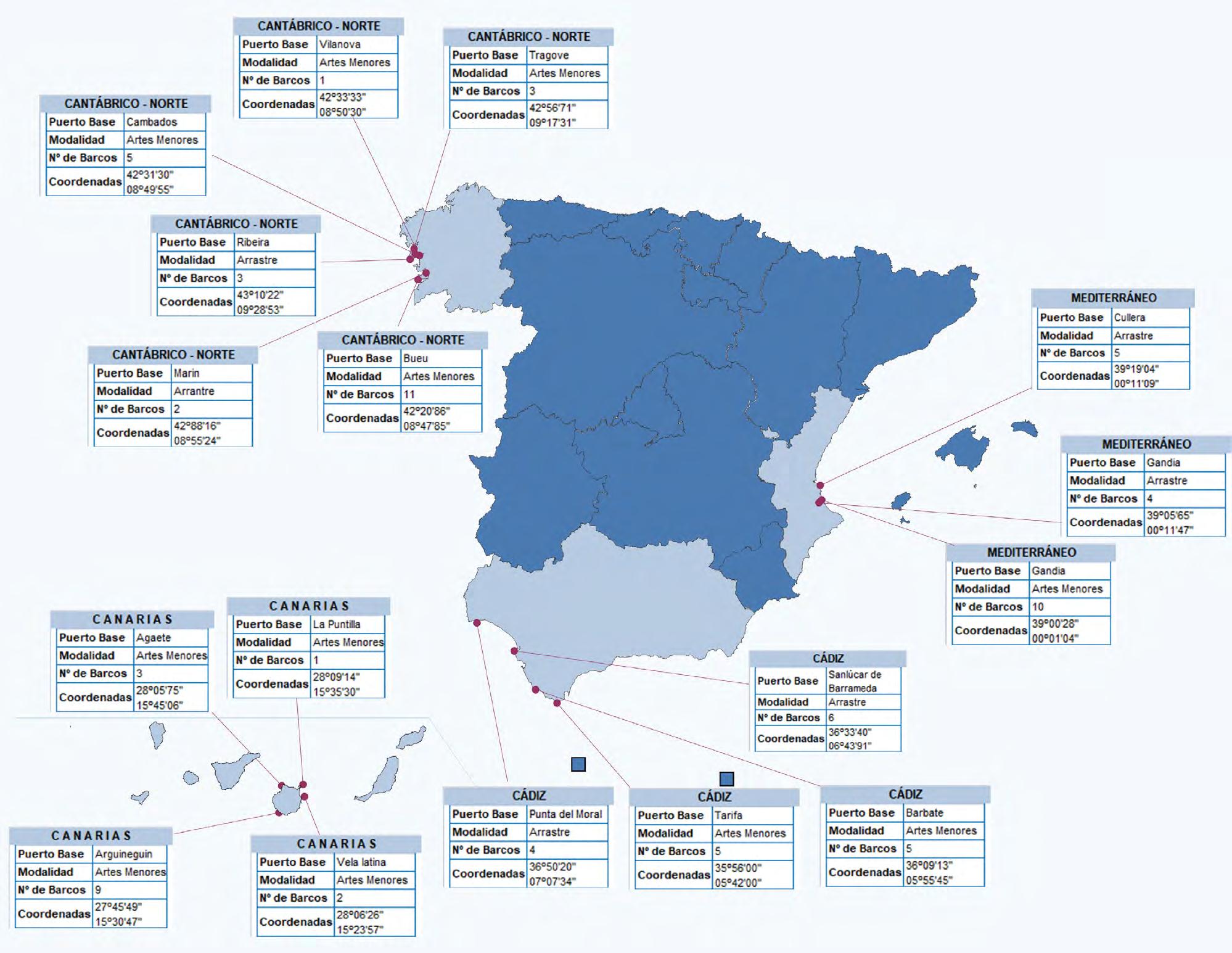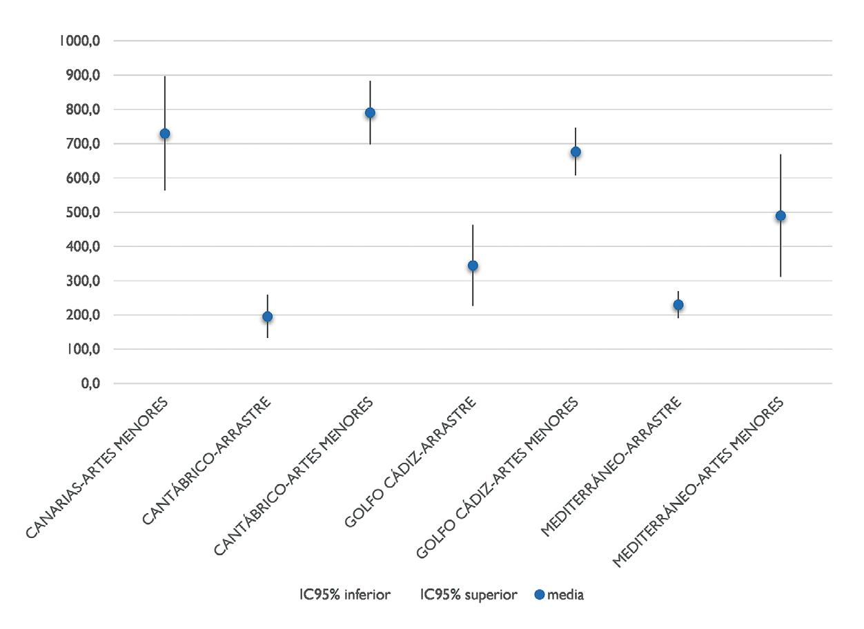 En la figura 7 se muestran los resultados para cada modalidad y zona del caladero nacional.