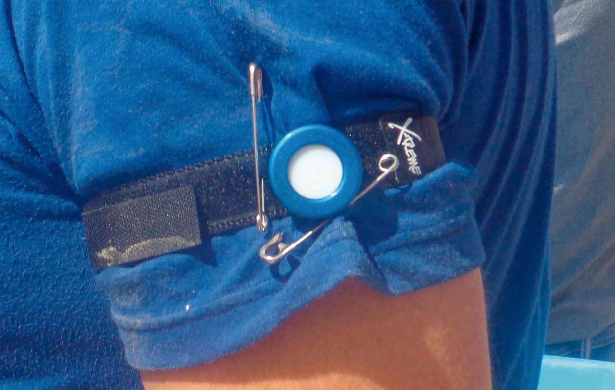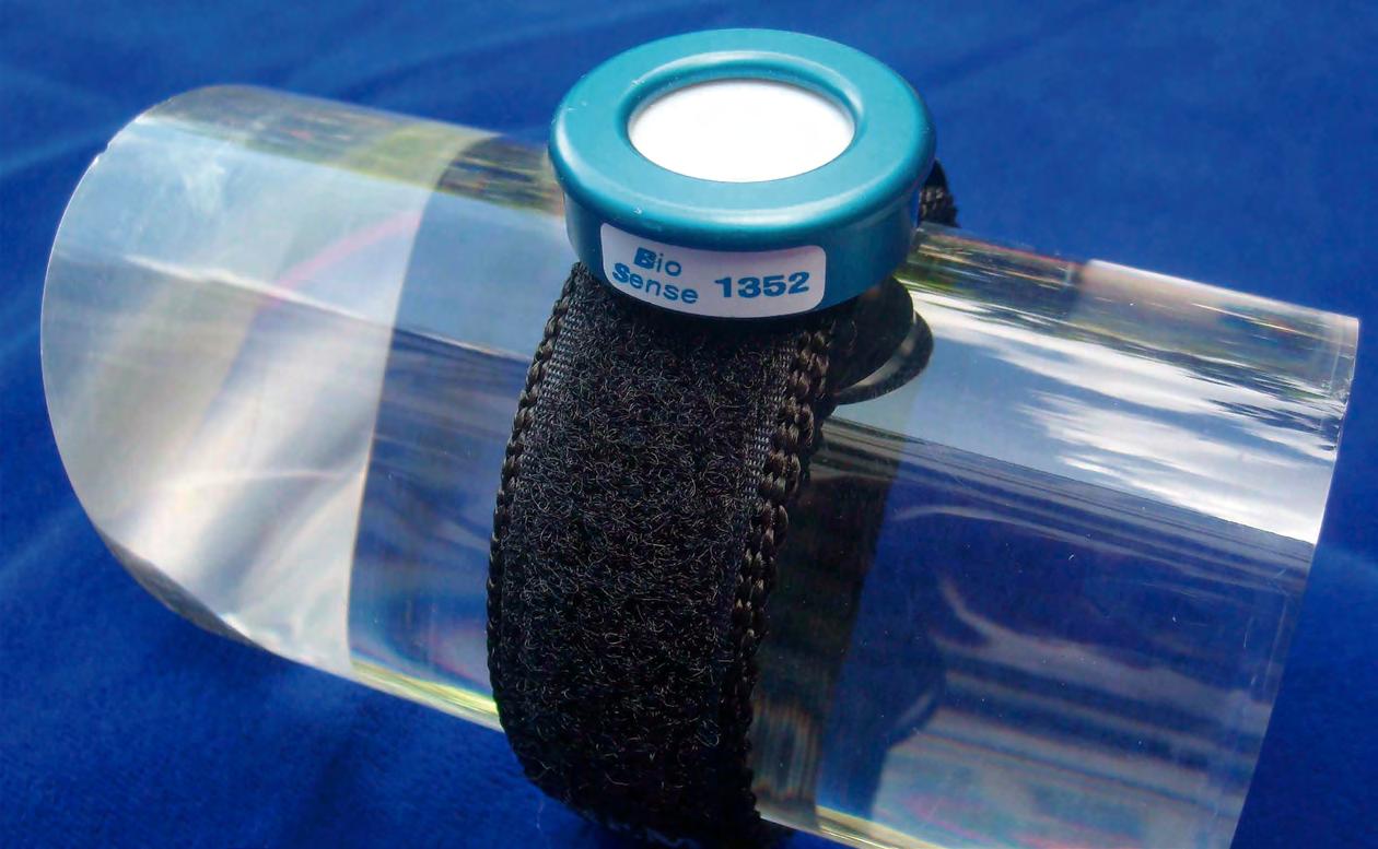 Blue line type II (Biosense Systems, Bornheim, Alemania) (Figura 1). Estos dispositivos presentan una tecnología basada en un biofilm de esporas, a las que la exposición a la RUV solar les produce un daño en el ADN celular. Esta cantidad de ADN dañado es cuantificable posteriormente y está correlacionado con la cantidad de dosis efectiva para la producción de eritema cutáneo, simulando, por tanto, la respuesta (dosis) eritematosa de la piel humana, de acuerdo con el espectro de referencia de la CIE. Las características que presentan estos dosímetros, por ejemplo, su tamaño, resistencia al agua y el rango de trabajo, hacen que hayan sido considerados como los más apropiados para la consecución del estudio.