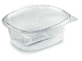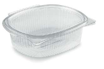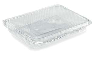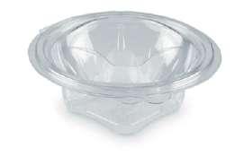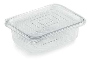 Containers and lids are lightweight, tough and provide a glass like clarity for excellent food presentation. Products may be formed into an almost limitless number of different shapes and sizes.