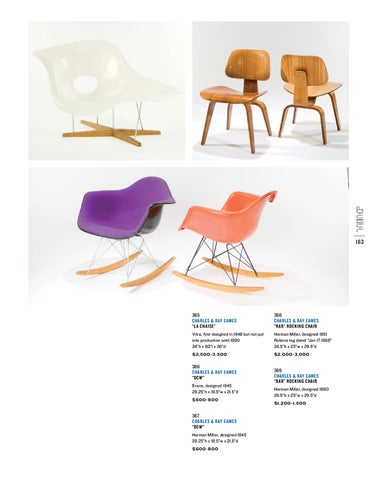 369 Charles & Ray Eames “RAR” rocking chair Herman Miller, designed 1960 26.5”h x 25”w x 29.5”d $1,200-1,500