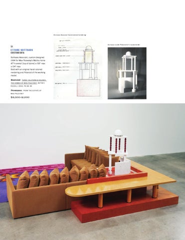 51 ETTORE SOTTSASS CUSTOM SOFA Sottsass Associati, custom designed 1984 for Max Palevsky’s Malibu home 47”h overall (top of dome) x 156” max x 134” max Sold with an original hand-colored rendering and Polaroid of the working model. Illustrated:
