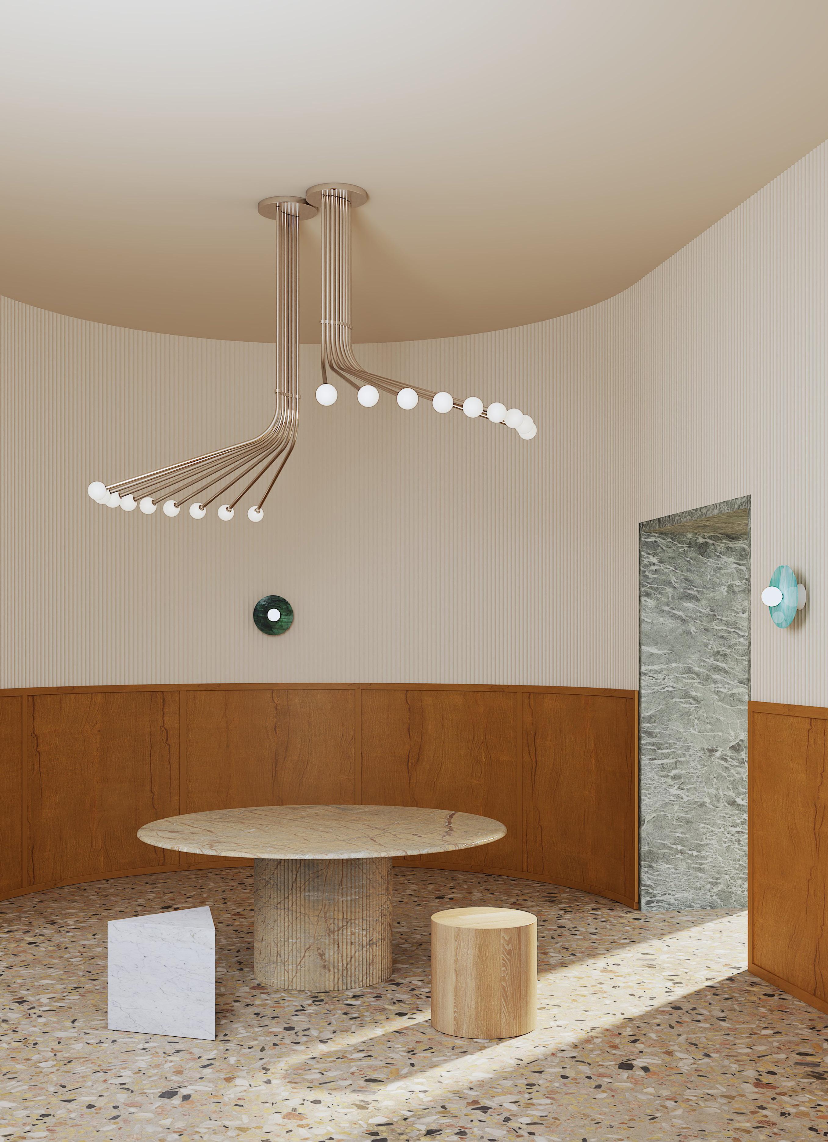 Throughout our work we have been drawn to exploring this multiplicity. We think our built environment should be able to reflect the complex moods and emotions we experience and seek. By placing certain pieces of lighting or furniture within a space, one can add layers of complexity.