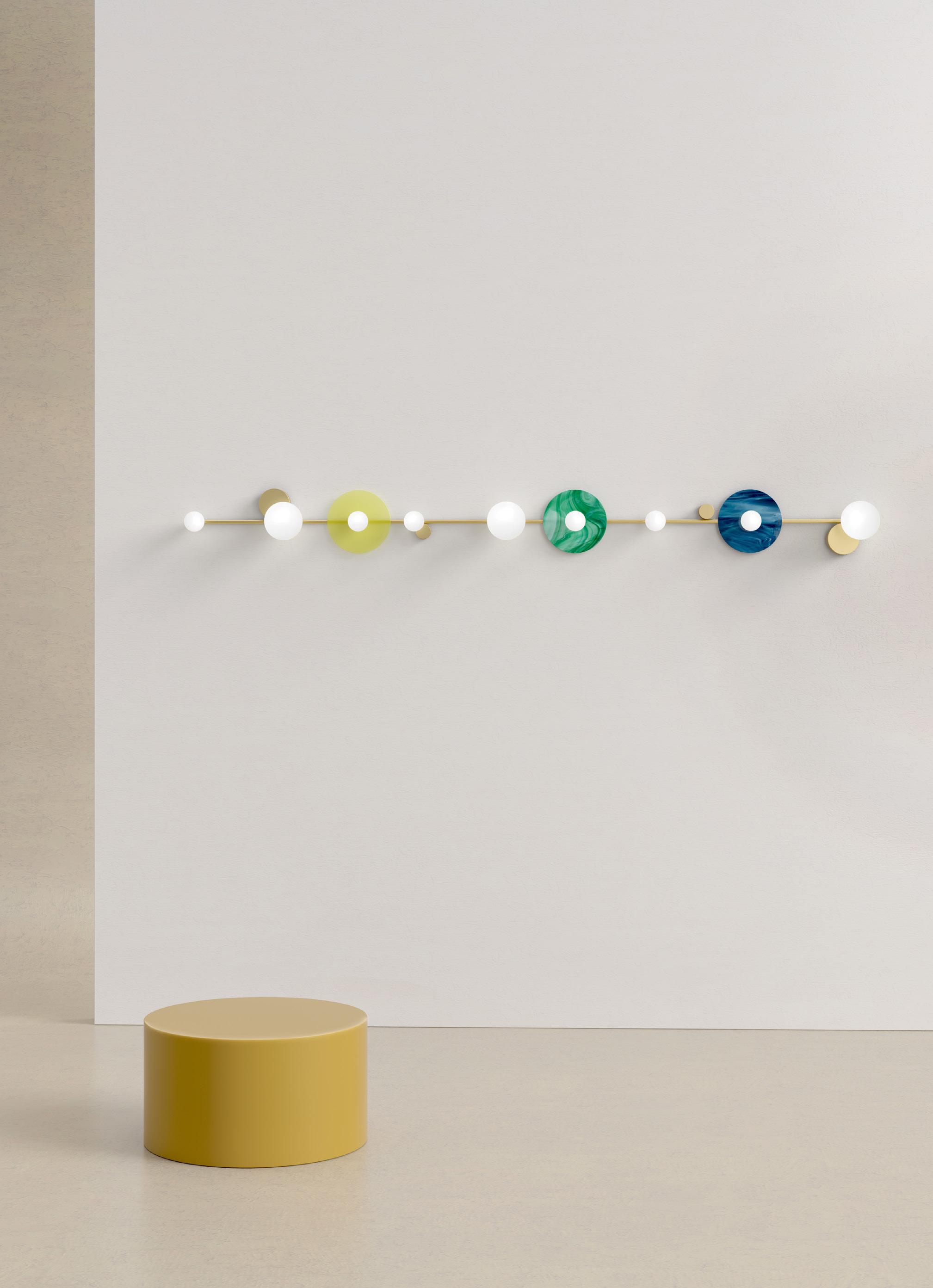 Brushed brass plates played a prominent role in lights such as the Row or Plates series.