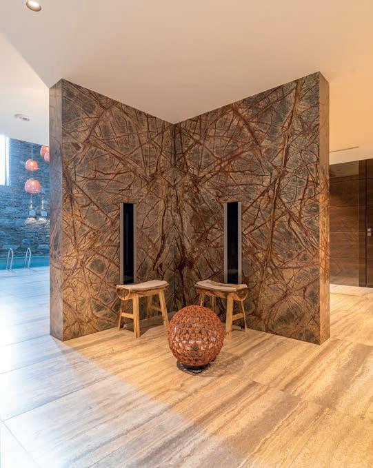 Pierre: Travertin Silver adouci / Rain Forest Brown adouci