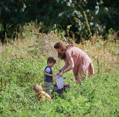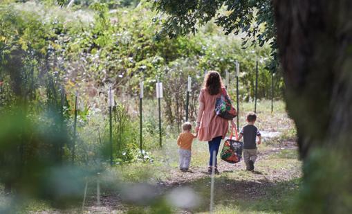 Third-season CSA member Monica Domencic and her two sons, Jeremiah and Thomas, venture into the pick-yourown fields. “We don’t have the luxury of an abundant garden, so this is joyful,” says Monica. It’s “a peaceful and fun adventure for the boys.”
