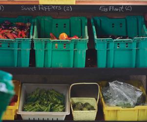 Produce sorted, washed and on display for CSA member pickup, which is held Fridays and Saturdays starting at the end of May and ending in early November.