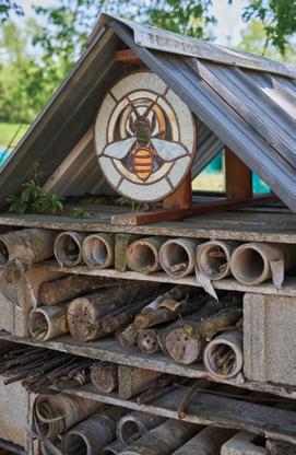 gardens and solitary bee houses create habitats for native pollinators and beneficial insects that ensure productive harvests while controlling pests without the use of pesticides.