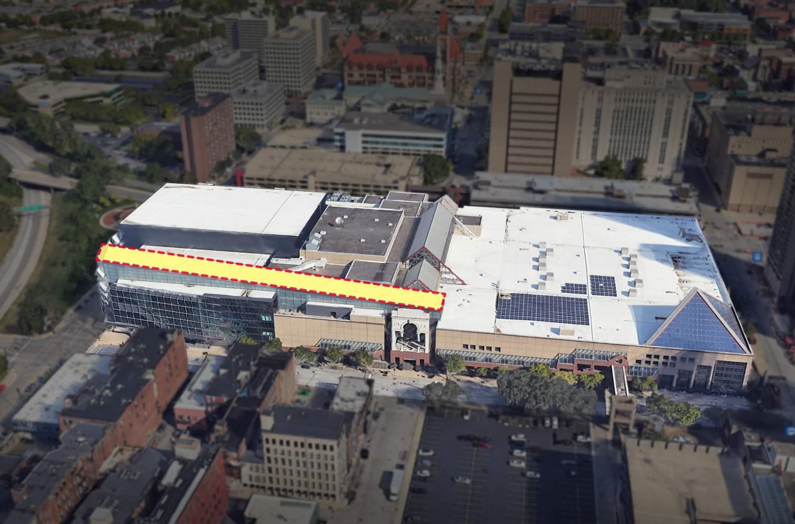 Lance Brannock, 2024 Cincinnati Convention Center Rendering of new southeast corner (epicenter). Existing southeast corner.