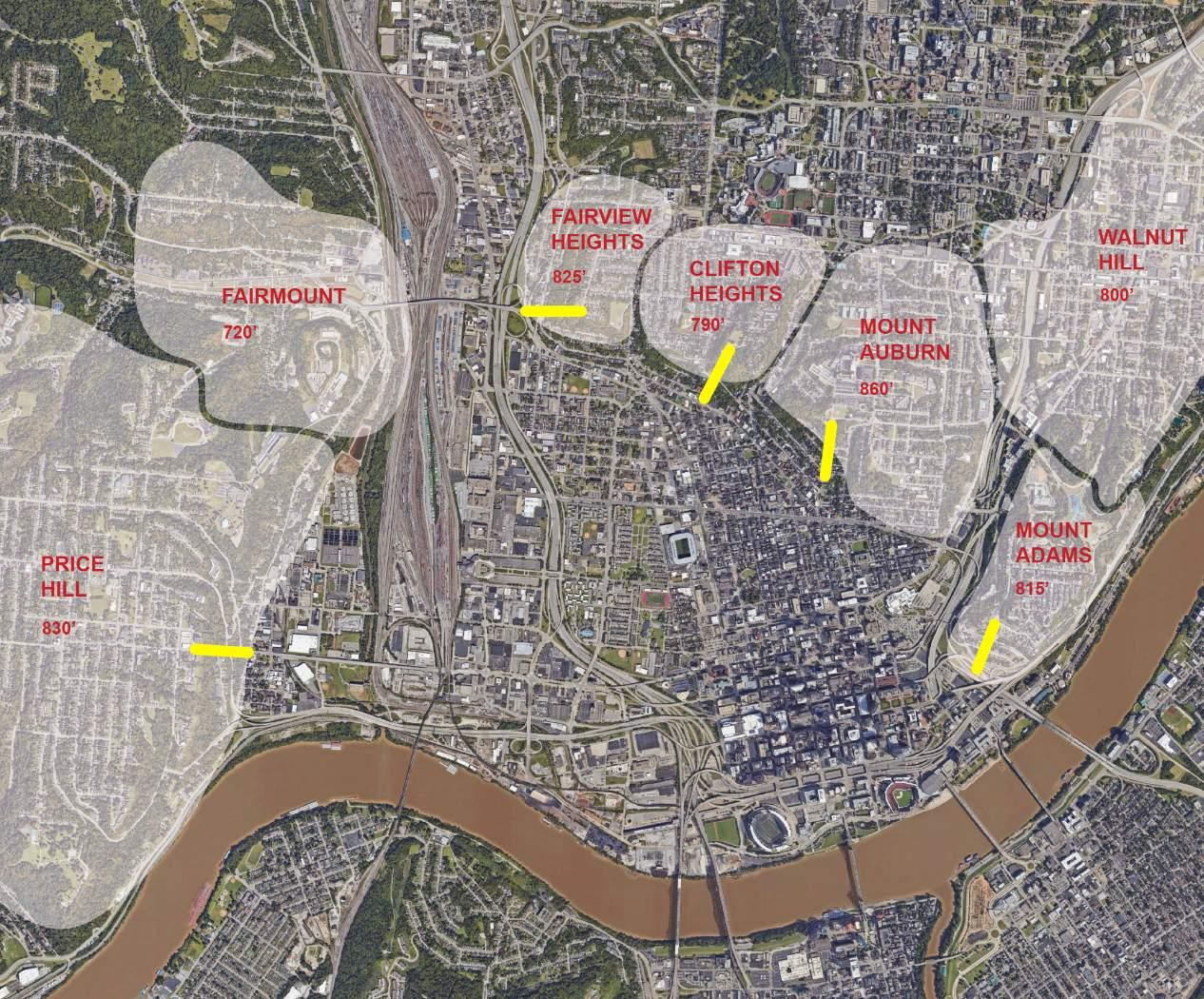 Lance Brannock, 2024 Cincinnati Convention Center Establishing place-based design narrative: the 7 Hills of Cincinnati. Establishing place-based design narrative: the historical 5 Inclines.