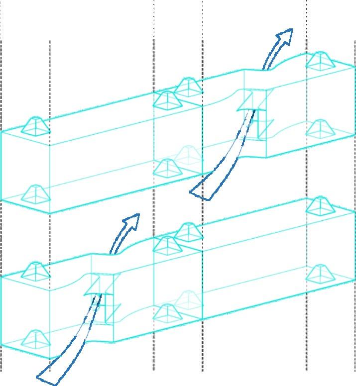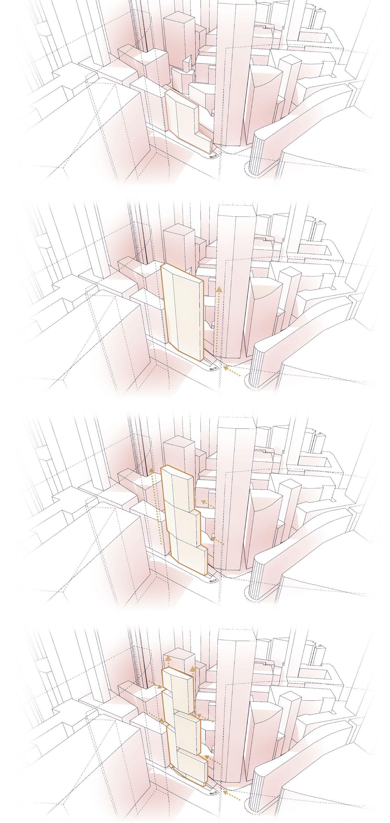 Creation of sky-gardens and public spaces also allow the volume to grow higher, recovering GFA and increasing the final number of storeys