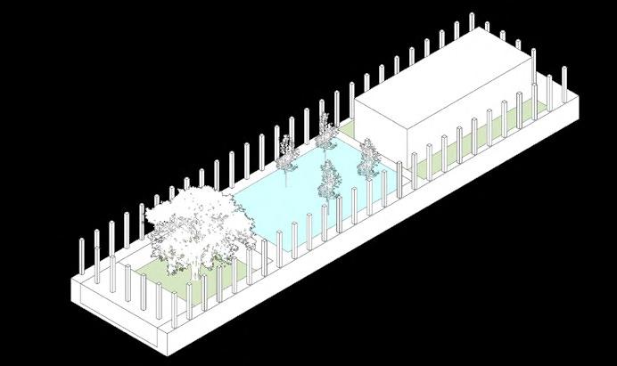 A facade of pillars to serve as an enclosure to the compound, inspired from local architecture