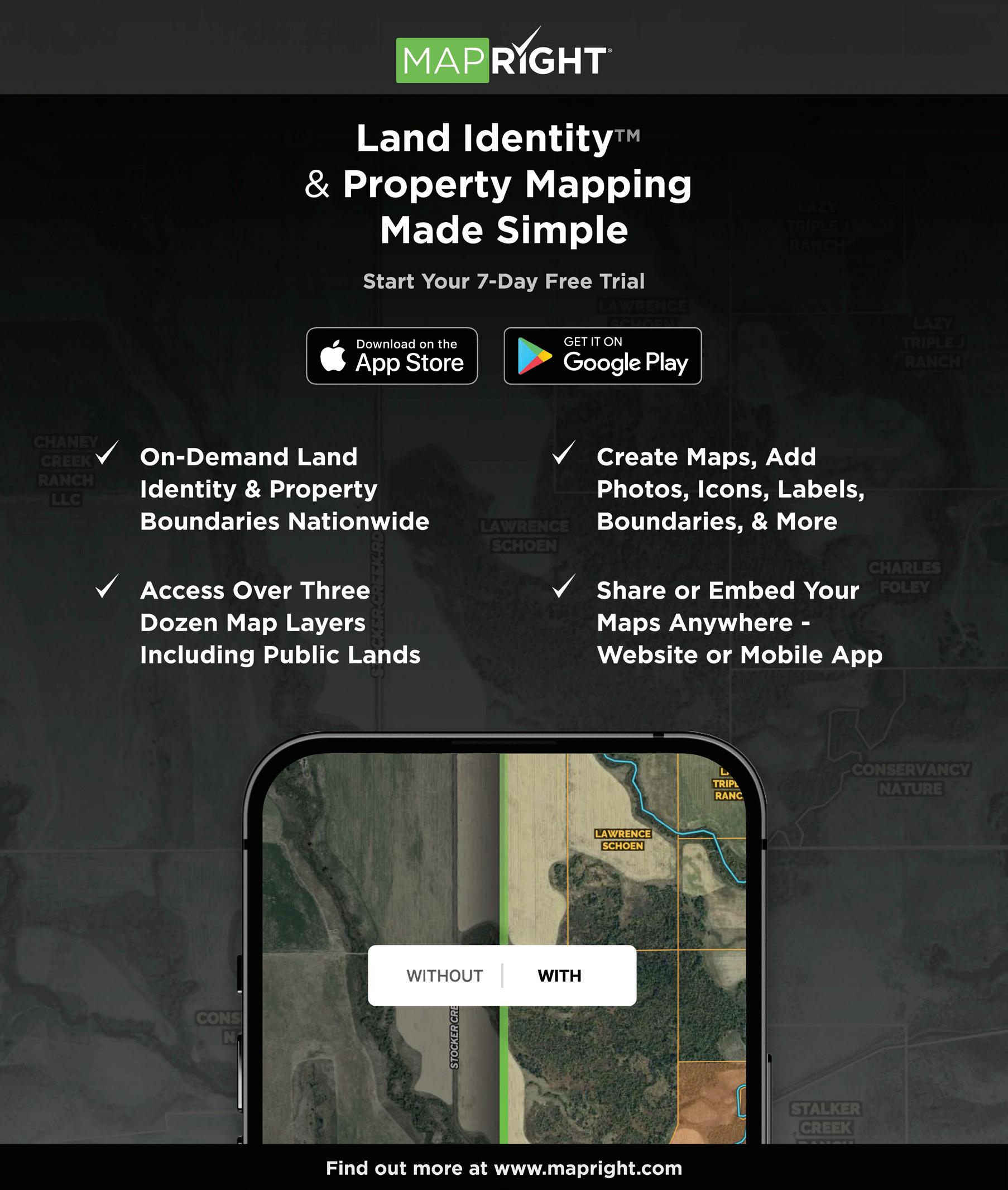 ©Copyright 2023 CoStar Group. All rights reserved. No part of this publication may be reproduced without written permission from the publisher. LAND Magazines are published by CoStar Group, 100 Congress Ave, Suite 1500, Austin, Texas 78701. Information provided to CoStar Group is deemed reliable but not guaranteed. The publisher will not be responsible for any omissions, errors, typographical mistakes or misinformation within this publication. Measurements and figures are approximate. Properties are subject to errors, omissions, prior change or prior sale. The real estate advertised in this magazine is subject to the Federal Fair Housing Act of 1968 and it’s amendments. This magazine will not knowingly accept any advertising for real estate which is in violation of the law. Dwellings advertised in this magazine are available on an equal opportunity basis. Printed in the USA.