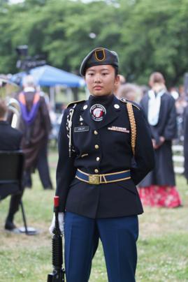 are happy at cadet sergeant or staff sergeant. Daisy was promoted to cadet first sergeant to lead all of her classmates. While learning leadership skill within JROTC, Daisy also volunteered to be in the Rifle Team, the Honor Guard Team, and the Color Guard Team.
