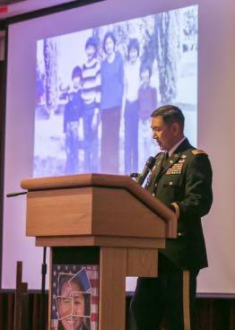 Lt. Col. Lan Dalat shares his perspective of the American Dream through his family's story of escape om Vietnam with an audience of community members May 18, 2017 for the Asian American Paci c Islander Heritage Month Observance at Camp Zama Community Club. (U.S. Army photo Honey Nixon) (Photo Credit: Honey E Nixon)