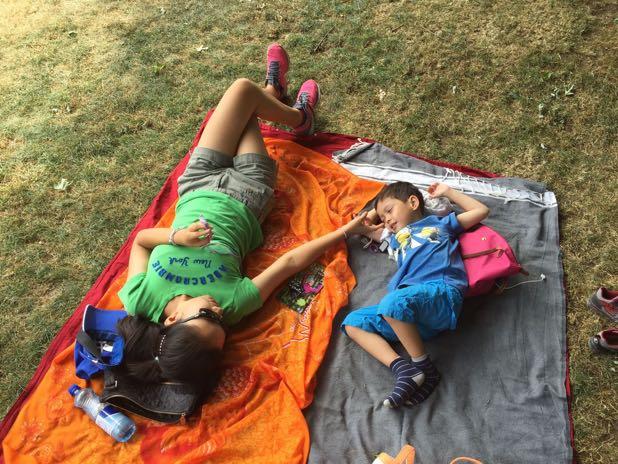Daisy and her best iend Lydia relax in the shade at Zama Sun ower Festival.