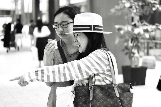 Daisy keeps an eye out for her li le sister at Midtown Tokyo