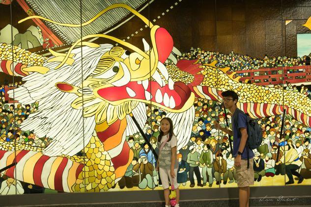 Dan and Hanna encounter a large stainless mural in one of the subway systems